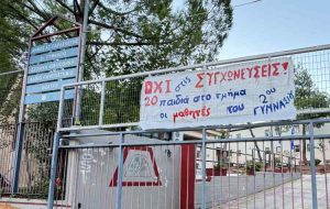 -τη διαμαρτυρία των μαθητών, οι οποίοι ανάρτησαν πανό στο σχολείο τους