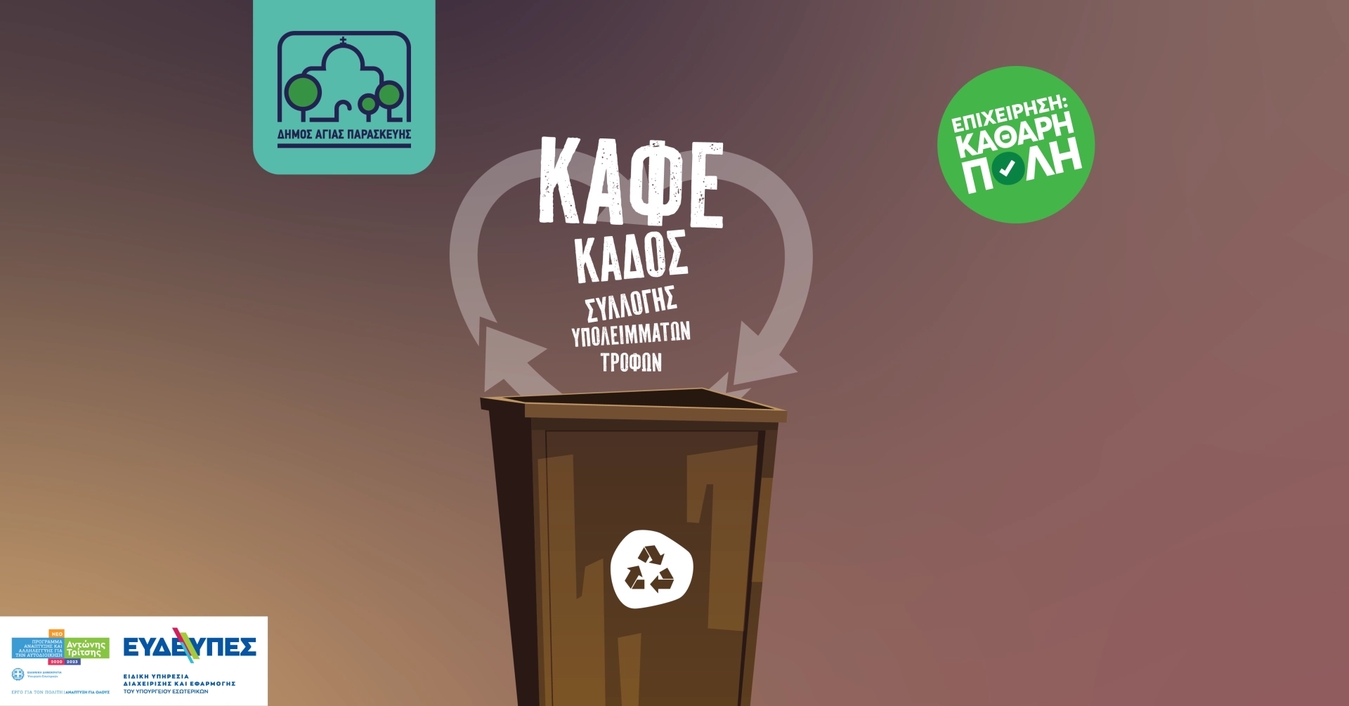 Την «εκστρατεία» ενημέρωσης για τη διαχείριση των βιοαποβλήτων συνεχίζει ο Δήμος Αγίας Παρασκευής. Όπως αναφέρει, επεκτείνεται η τοποθέτηση των καφέ κάδων σε σημεία της πόλης, ενώ καλούνται οι δημότες να ενημερώνονται σχετικά από το σάιτ του Δήμου.