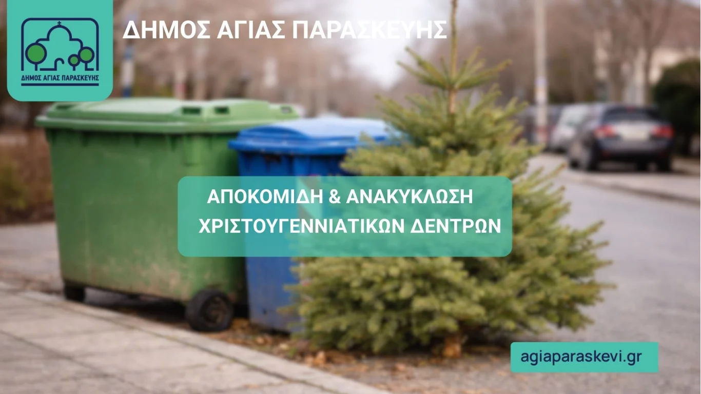 Tην προστασία του περιβάλλοντος, σε συνδυασμό με την εύρυθμη λειτουργία της Αγίας Παρασκευής επιδιώκει ο Δήμος, ανακοινώνοντας την έναρξη του προγράμματος αποκομιδής των φυσικών χριστουγεννιάτικων δέντρων.
