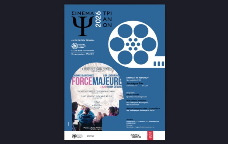 Στο πλαίσιο του εφετινού 18ου κινηματογραφικού αφιερώματος του κλάδου «Τέχνης» της «Ελληνικής Ψυχιατρικής Εταιρείας» θα προβληθεί η ταινία «Ανωτέρα Βία» γνωστή σαν «Turist ή Force Majeure» του Ruben Östlund (2014) που εμπεριέχει την έννοια του Ξενισμού, και της Αποξένωσης σε ένα ζευγάρι μετά από ένα αιφνίδιο και απειλητικό γεγονός.