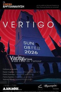 Το Σινεμά & Ψυχανάλυση υπό την αιγίδα της Ελληνικής Εταιρείας της Νέας Λακανικής Σχολής και με την υποστήριξη της Ακαδημίας Κλινικών Σπουδών της Αθήνας διοργανώνει την προβολή της ταινίας «Δεσμώτης του Ιλίγγου» του Άλφρεντ Χίτσκοκ, την Κυριακή 8 Φεβρουαρίου 2026 στις 14:00 στον κινηματογράφο Δαναό.