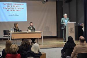 Στην εκδήλωση, που συντονίστηκε από τη Βασιλεία Βέλμαχου του Κέντρου Κοινότητας Διονύσου, συμμετείχαν οι ογκολόγοι δρ. Ιωσήφ Σγουρός, δρ. Κωνσταντίνος Τσιγαρίδας και δρ. Χρήστος Βέρος, η κλινική διαιτολόγος Μάρω Ζώη, ο ψυχολόγος Σπυρίδων Τσοτάκος, η κοινωνική λειτουργός Αντωνία Γιαννίρη και η ασθενής Αρετή-Ευαγγελία Πρίντεζη, η οποία μοιράστηκε τη δική της εμπειρία και το μήνυμά της για δύναμη και αισιοδοξία.