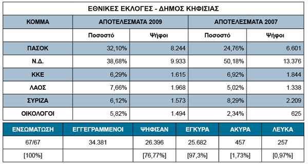 Το ΠΑΣΟΚ απογειώθηκε σχεδόν στο 46% αρκετά πάνω από το ποσοστό του στη Β’ Περιφέρεια, ενώ η Νέα Δημοκρατία βρέθηκε χαμηλότερα από το μέσο όρο της στη Β’ Περιφέρεια Αθήνας. Το ΚΚΕ υπολείπεται αρκετά της μέσης επίδοσής του στη Β’ Αθήνας, Το ίδιο συμβαίνει και με τον ΣΥΡΙΖΑ και με τους Οικολόγους Πράσινους.