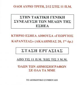 Όπως αναφέρει σε ανακοίνωσή της η ΕΣΗΕΑ: