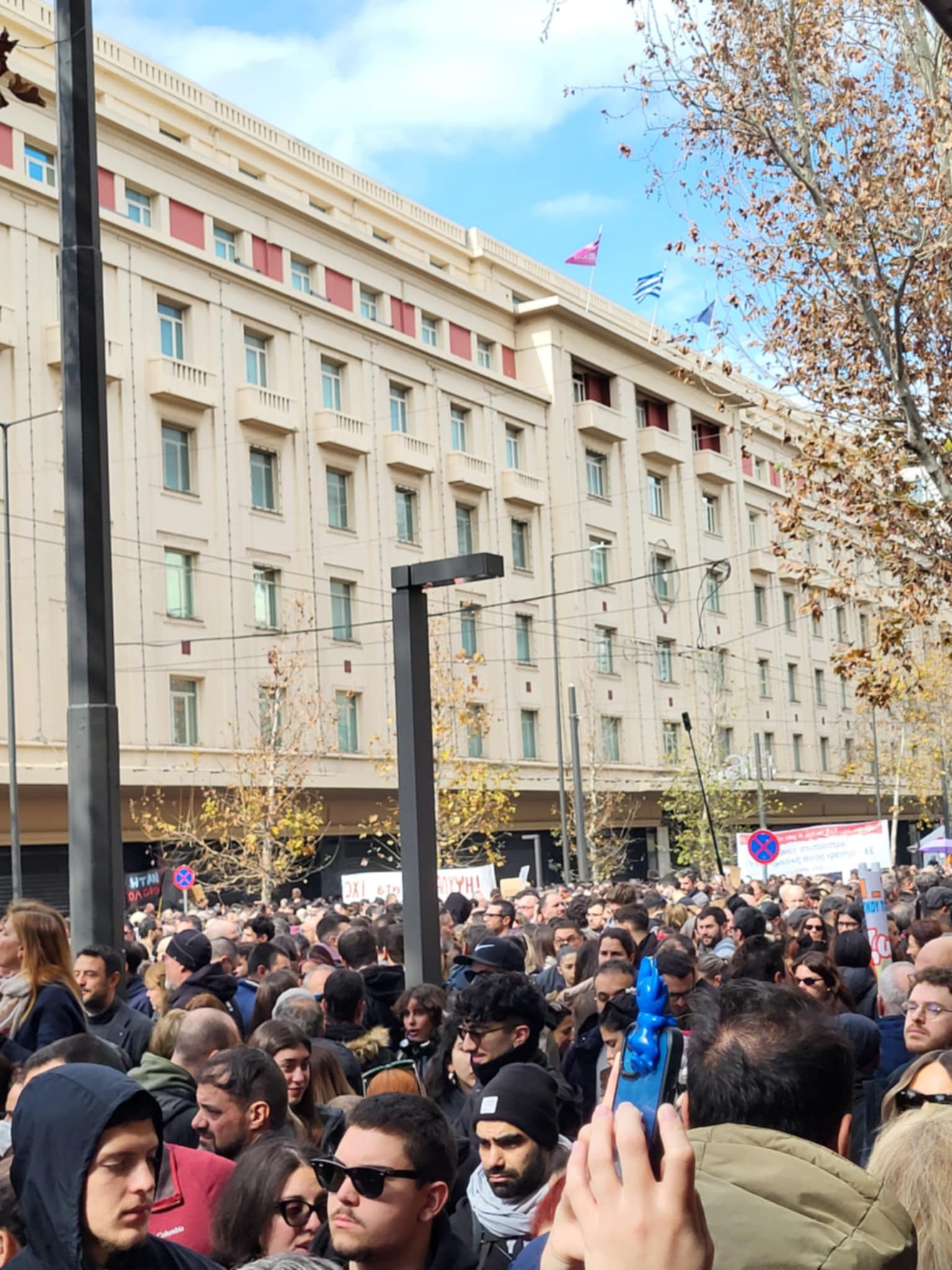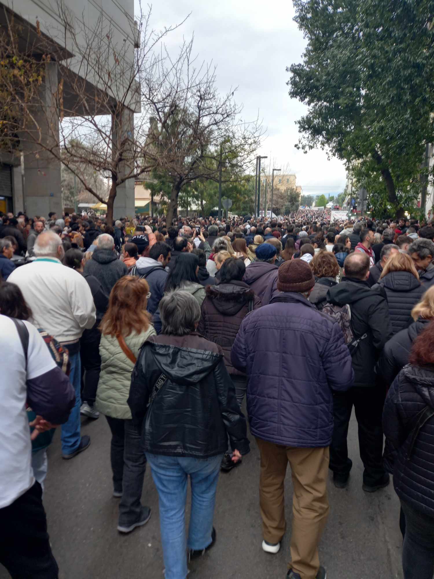 Πλήθος κόσμου , κάθε ηλικίας, έχει κατακλύσει την πλατεία Συντάγματος και τους γύρω δρόμους, για να τιμήσει τη μνήμη των 57 νεκρών και με αίτημα να αποδοθεί δικαιοσύνη.