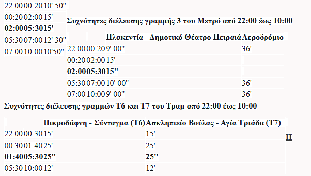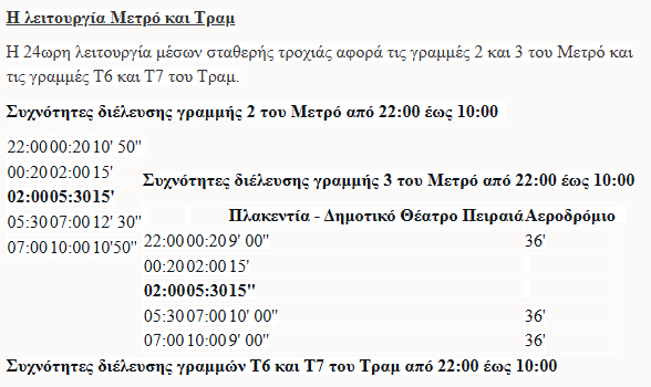 Η 24ωρη λειτουργία μέσων σταθερής τροχιάς αφορά τις γραμμές 2 και 3 του Μετρό και τις γραμμές Τ6 και Τ7 του Τραμ.