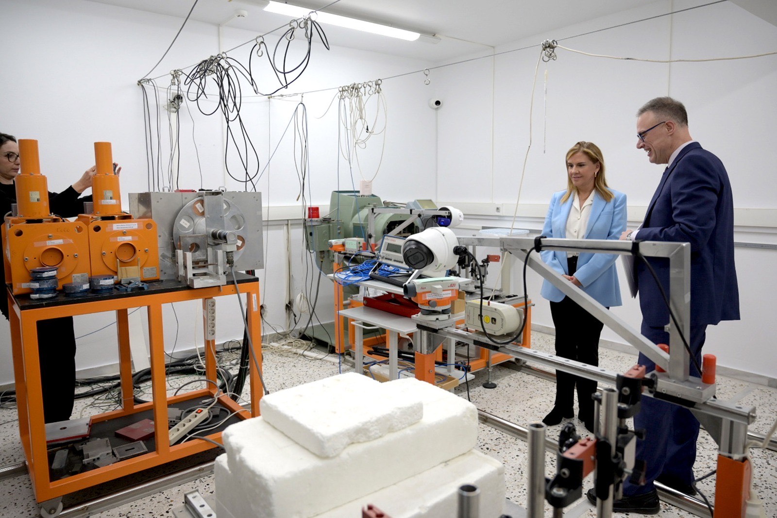 Στη συνέχεια ξεναγήθηκε στους χώρους της ΕΕΑΕ και συγκεκριμένα στο μοναδικό στην Ελλάδα Εργαστήριο Βαθμονόμησης Οργάνων Ιοντιζουσών Ακτινοβολιών, στο Εργαστήριο Δοσιμετρίας, που διενεργεί τη μηνιαία ατομική δοσιμέτρηση των περίπου 15.000 επαγγελματικά εκτιθέμενων εργαζομένων στη χώρα μας, καθώς και το Εργαστήριο της Ραδιενέργειας Περιβάλλοντος, που λειτουργεί το τηλεμετρικό σύστημα παρακολούθησης ραδιενέργειας της χώρας και πραγματοποιεί εργαστηριακές ραδιολογικές αναλύσεις και μετρήσεις ραδονίου.