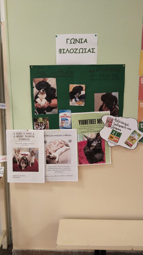 Οι «Γωνιές Φιλοζωίας» θα αποτελέσουν σημείο ενημέρωσης για οικογένειες και μαθητές. Όπως εξηγεί η σύμβουλος, «όταν θα πραγματοποιείται κάποια δράση, όπως μία ενημέρωση για τις στειρώσεις, είτε μέσω κτηνιάτρων, είτε μέσω του Δήμου, να μπορεί να αναρτάται το σχετικό υλικό στις Γωνιές Φιλοζωίας και με αυτόν τον τρόπο να ενημερώνονται και οι γονείς». Οι αγγελίες υιοθεσίας θα ανανεώνονται συχνά: «μπορεί μέσα στο 15ήμερο να έχουμε και δύο καινούργιες αγγελίες», επισημαίνει, υπογραμμίζοντας ότι η τακτικότητα είναι κρίσιμη για τη διατήρηση της κινητικότητας.