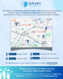 Παγκόσμια Ημέρα Ψυχικής Υγείας η Παρασκευή 10 Οκτωβρίου και ως τέτοια αποτελεί την καλύτερη αφορμή για δράσεις ενημέρωσης και ευαισθητοποίησης πάνω σε αυτό το ευαίσθητο θέμα.