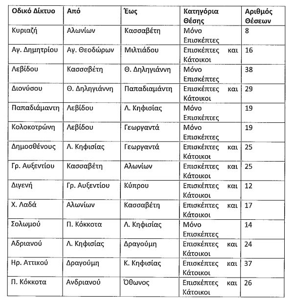 Οι μόνιμοι κάτοικοι θα εκδίδουν σχετική κάρτα για τη θέση τους, με ετήσιο τέλος τα 10 ευρώ ανά όχημα.