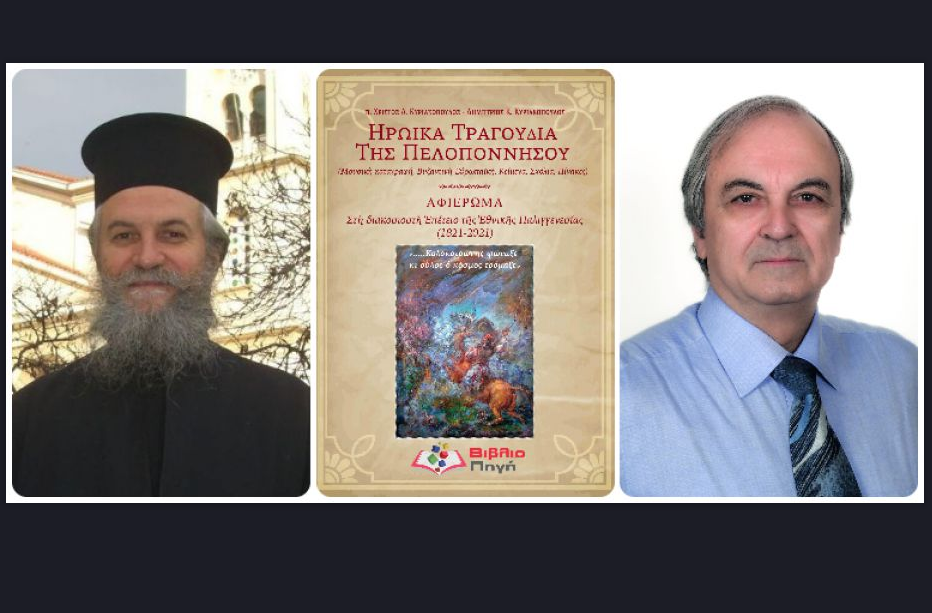 Όπως ανακοινώθηκε σχετικά, στο πλαίσιο της εκδήλωσης θα παρουσιαστεί το βραβευμένο από την Ακαδημία Αθηνών βιβλίο «Ηρωικά τραγούδια της Πελοποννήσου» των Πρωτ. Χρίστου Δ. Κυριακόπουλου και Δημητρίου Κ. Κυριακόπουλου.