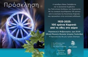 Η εκδήλωση θα διεξαχθεί υπό την αιγίδα του Δήμου Κηφισιάς την Παρασκευή 6 Φεβρουαρίου, στις 20.00 στο Εθνικό Μουσείο Φυσικής Ιστορίας Γουλανδρή.
