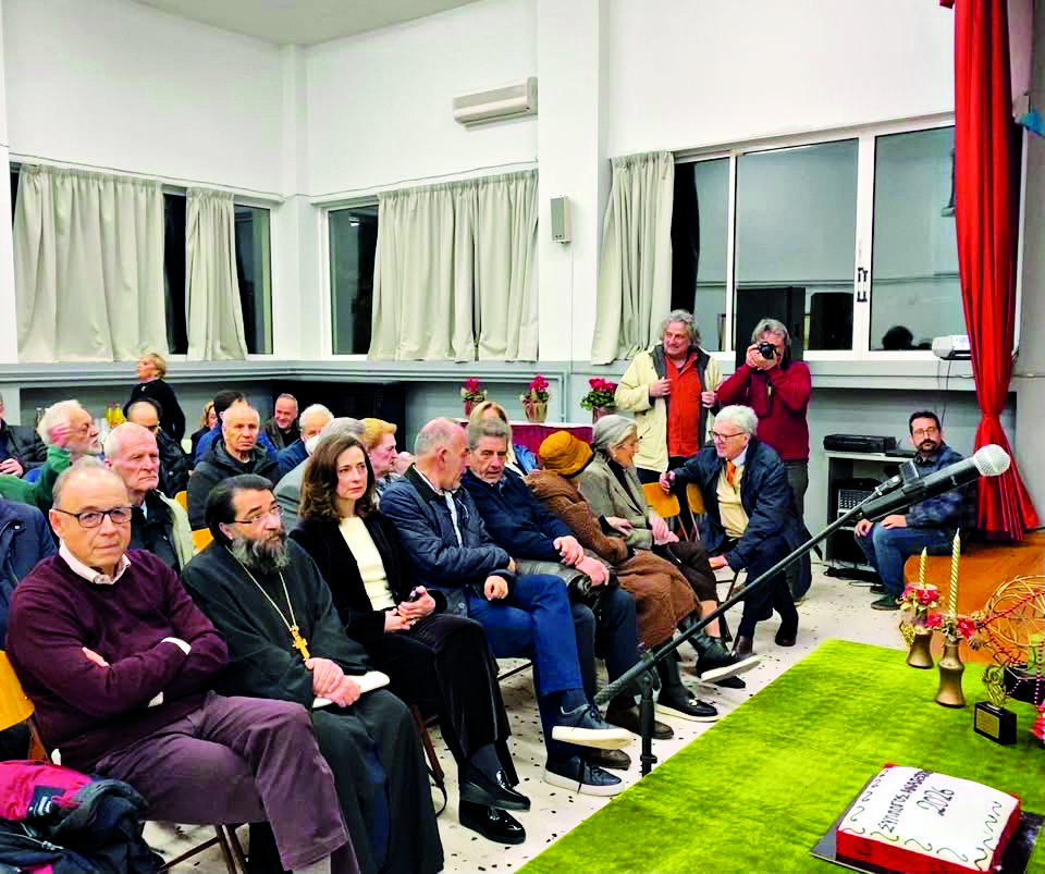 Ο πρόεδρος Σταύρος Λύτινας και τα μέλη του Διοικητικού Συμβουλίου υποδέχτηκαν τους καλεσμένους στην εκδήλωση, που γέμισαν ασφυκτικά την αίθουσα και σε κλίμα έκδηλης χαράς, αντάλλαξαν ευχές για το νέο έτος 2026.