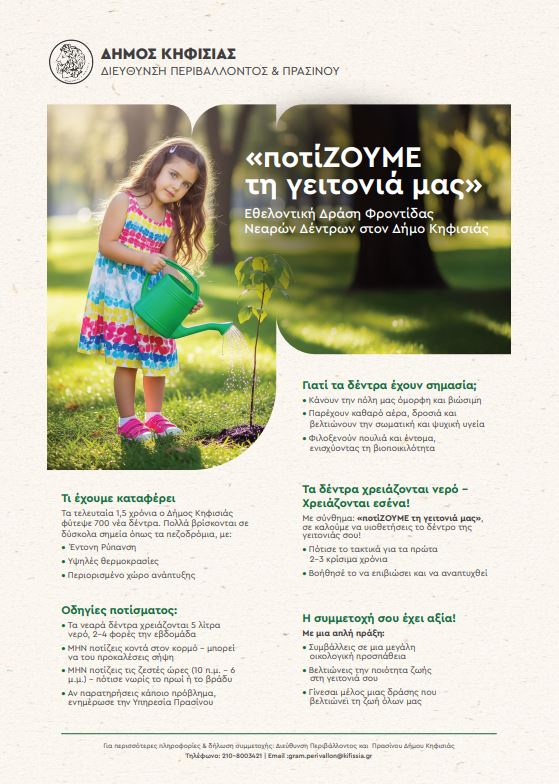 Μαζί, πρασινίΖΟΥΜΕ και ποτίΖΟΥΜΕ την Κηφισιά.»
