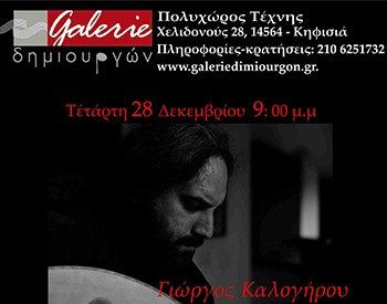 Η “Galerie δημιουργών” φιλοξενεί για μία και μοναδική βραδιά τον τραγουδοποιό Γιώργο Καλογήρου ο οποίος θα παρουσιάσει τραγούδια από το σύνολο της συνθετικής του εργασίας.
