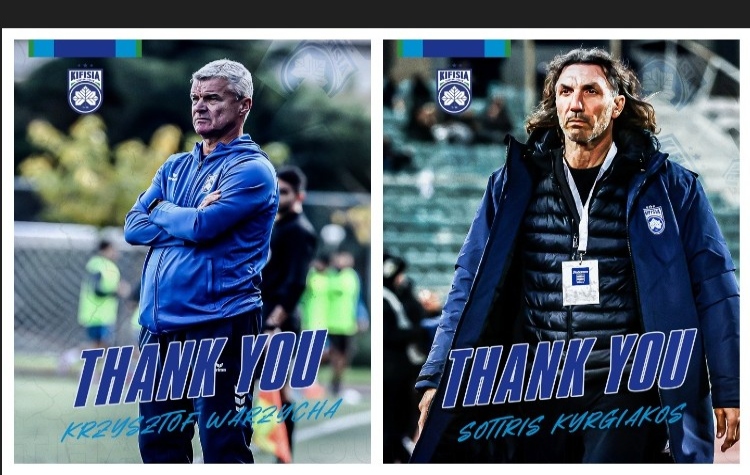 Τη λύση της συνεργασίας της τόσο με τον μέχρι πρότινος τιμ μάνατζερ του ποδοσφαιρικού τμήματος Σωτήρη Κυργιάκο όσο και τον προπονητή της Κ19 Κριστόφ Βαζέχα ανακοίνωσε τα τελευταία 24ωρα η ΠΑΕ Κηφισιά.