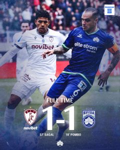 Η απάντηση των «βυσσινί» ήρθε στο 58’ όταν ισοφάρισαν σε 1-1 μετά από δυνατό σουτ του Σαγκάλ εκτός περιοχής που κόντραρε στον Πέτκοφ και κατέληξε στα δίχτυα του Ραμίρες.