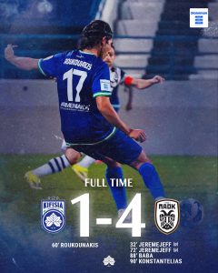 H Κηφισιά ηττήθηκε από τον ΠΑΟΚ με 1-4 στο γήπεδο της Νεάπολης στην εξ’αναβολής αναμέτρηση των δύο ομάδων για την 18η αγωνιστική της Super League που πραγματοποιήθηκε την Τετάρτη 4 Μαρτίου.