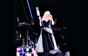Κρατώντας ένα ψεύτικο παιχνίδι – όπλο στη σκηνή του Λας Βέγκας, η 35χρονη Βρετανίδα τραγουδίστρια, επισήμανε την ανησυχητική τάση των οπαδών να πετούν αντικείμενα στους καλλιτέχνες.