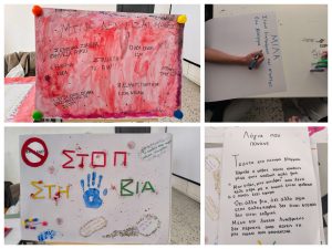 Οι μαθητές είχαν την ευκαιρία να εκφραστούν καλλιτεχνικά, αποτυπώνοντας είτε ένα σύνθημα, είτε ένα τραγούδι, με θέμα «Ένα Σχολείο χωρίς Βία».
