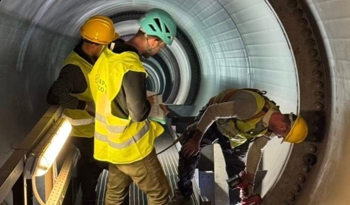 Παράλληλα, έχουν ξεκινήσει οι εργασίες υδροβολής στο κυρίως σώμα του στεγάστρου. Η διαδικασία περιλαμβάνει υδροβολή υψηλής πίεσης (Ultra High Pressure Water Jetting) με πίεση έως 2.500 bar, για την πλήρη απομάκρυνση παλαιών επιστρώσεων, οξειδώσεων και ρύπων από τις μεταλλικές επιφάνειες.