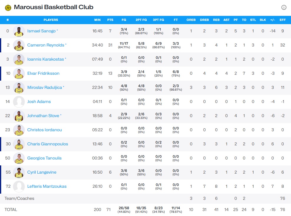 Οι φιλοξενούμενοι πλήρωσαν το «μπλακ-άουτ» στα πρώτα λεπτά της τέταρτης περιόδου, όταν οι Σουηδοί έκαναν επιμέρους σκορ 23-13. Οι γηπεδούχοι διατήρησαν το προβάδισμα ως το φινάλε παρά τη μεγάλη εμφάνιση του Κάμερον Ρέινολντς (31π.) και τις πρωτοβουλίες του Έλβαρ Φρίντρικσον στο φινάλε.