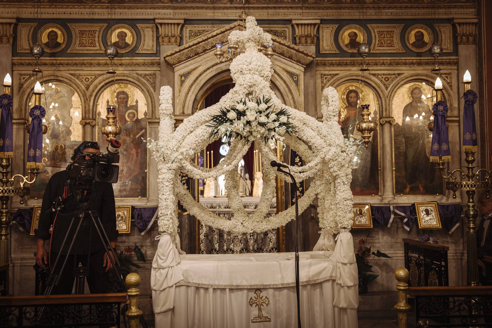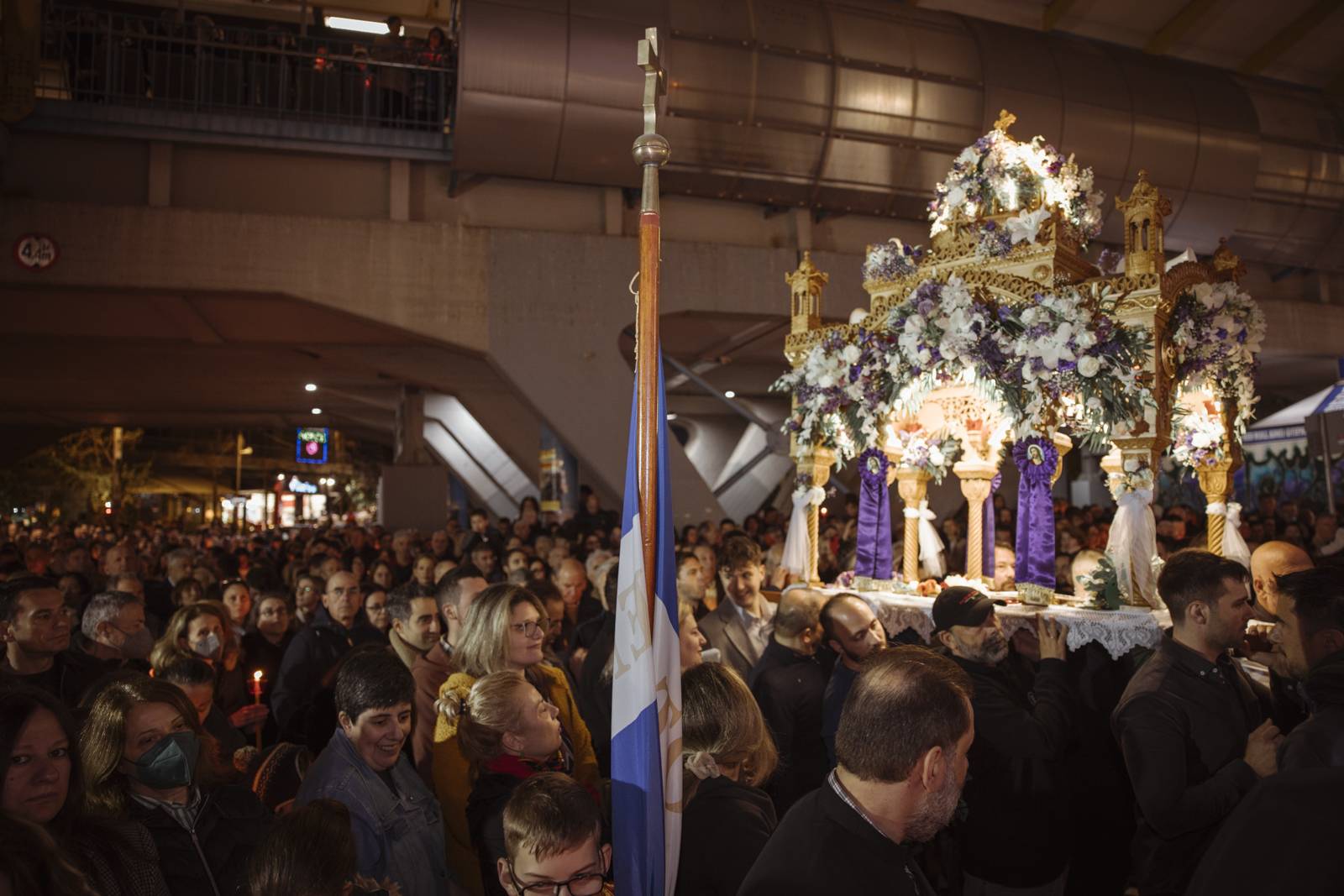 Ακολούθησε η καθιερωμένη περιφορά του Επιταφίου, με τη συνοδεία της Φιλαρμονικής Αμαρουσίου. Ο επιτάφιος, στολισμένος με λευκά άνθη, διήλθε από τους δρόμους της πόλης και, σύμφωνα με το τοπικό έθιμο, συναντήθηκε στην Πλατεία Ευτέρπης (ΗΣΑΠ) με τους Επιταφίους των γειτονικών ενοριών του Ι.Ν. Αγίου Νικολάου και του Ι.Ν. Αγίων Αναργύρων.