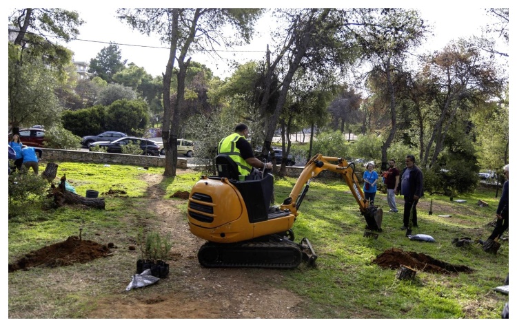 Ιδιαίτερα ελπιδοφόρα και συγκινητική ήταν η αθρόα συμμετοχή των μικρών παιδιών και των εφήβων της περιοχής που ακόπιαστα δούλεψαν μέχρι να μπει και το τελευταίο δεντράκι στη γη.