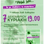 Το Τμήμα Πολιτισμού του Δήμου Μεταμόρφωση διοργανώνει μία παρουσίαση του βιωματικού βιβλίου «Μαμά μου… Θα με βοηθήσεις να περπατήσω;» της δημότισσας κας Αθηνάς Ευθυμίου, που αφηγείται μία αληθινή ιστορία για την περιγεννητική αναπηρία.