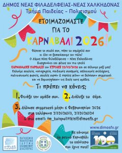 Ο Δήμος Νέας Φιλαδέλφειας – Νέας Χαλκηδόνας προετοιμάζεται για μια ακόμα ξέφρενη καρναβαλική εκδήλωση, προσκαλώντας όλους όσοι επιθυμούν να συμμετάσχουν στην παρέλαση.