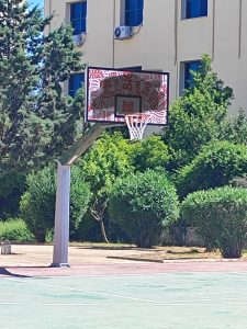 Στη θέση των μπασκετών του προαυλίου είχαν τοποθετηθεί ταμπλό με… διαφήμιση επιχείρησης εστίασης που λειτουργεί στο Δήμο (!)…