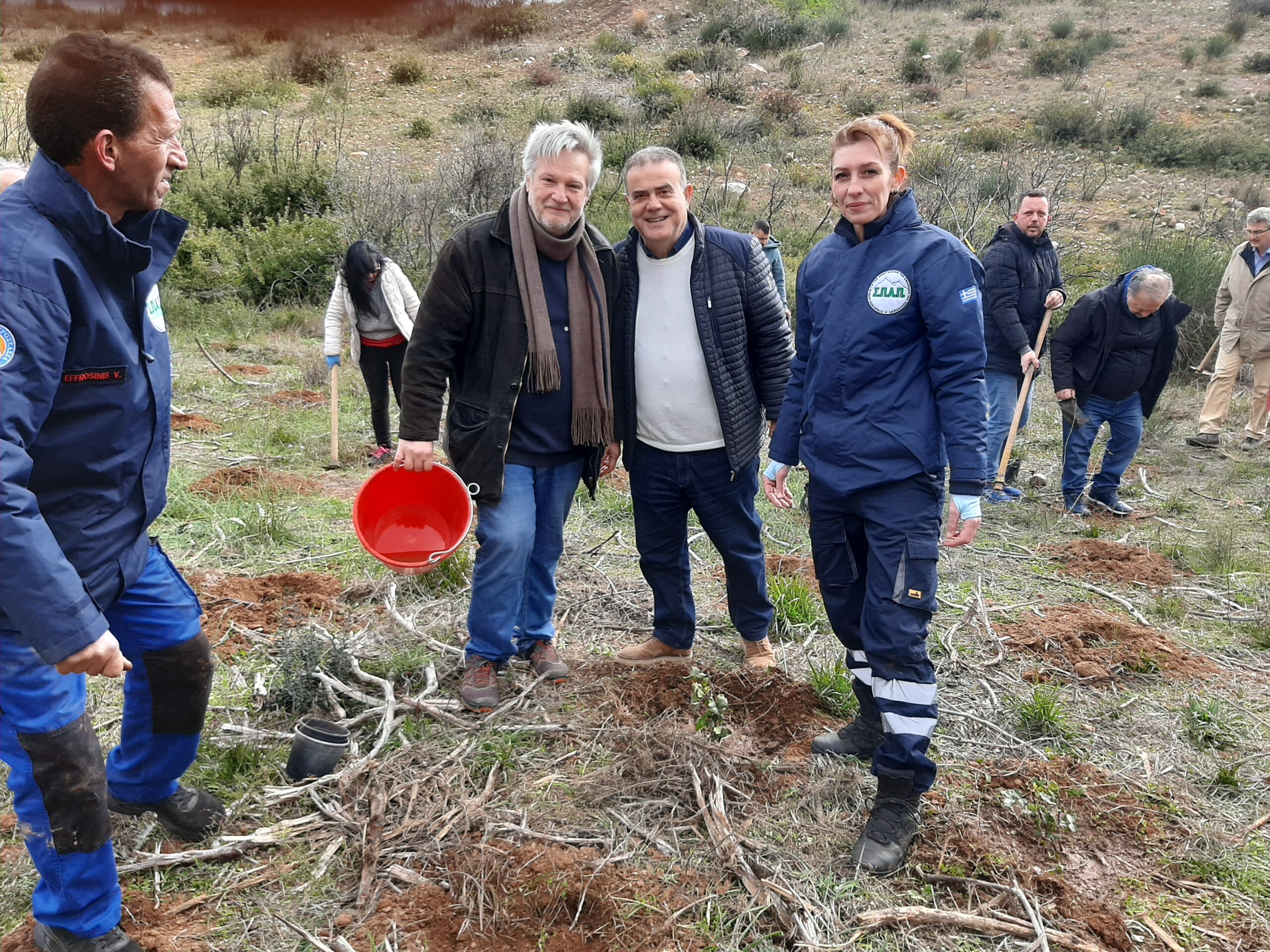 Στη δενδροφύτευση συμμετείχαν μεταξύ άλλων, ο πρόεδρος του «Όλοι μαζί μπορούμε» Γιάννης Σπανολιός, ο δήμαρχος Παλλήνης Χρήστος Αηδόνης με ομάδα αντιδημάρχων και δημοτικών συμβούλων του Δήμου Παλλήνης, ο αντιπρόεδρος του ΣΠΑΠ και δημοτικός σύμβουλος Βριλησσίων, Νικήτας Σταματελόπουλος, ο πρόεδρος της Επιτροπής Πολιτικής Προστασίας και Κλιματικής Κρίσης της ΚΕΔΕ και μέλος του Δ.Σ. του ΣΠΑΠ, Βλάσσης Σιώμος, εθελοντές της Εθελοντικής Ομάδας Αντιμετώπισης Καταστροφών Αρτέμιδας (Ε.ΟΜ.Α.Κ.) και του Ελληνικού Ερυθρού Σταυρού και ο πρώην υπαρχηγός της Πυροσβεστικής και ειδικός σύμβουλος Πολιτικής Προστασίας του δημάρχου Κηφισιάς, στρατηγός Γιάννης Σταμούλης.