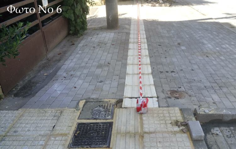 • Μπροστά από τις εισόδους των γκαράζ κατέβασαν το πεζοδρόμιο τόσο πολύ που σίγουρα θα υπάρξουν ατυχήματα κυρίως σε ηλικιωμένους αλλά και σε όλους τους υπόλοιπους που περπατούν πάνω σε αυτό αμέριμνοι… Άνθρωποι με ειδικές ανάγκες, καροτσάκια λαϊκής, αναπηρικά αμαξίδια θεωρώ ότι θα έχουν σοβαρό πρόβλημα. Φωτό Νο8 (έχει και άλλα σημεία απλώς δεν τα φωτογράφησα).