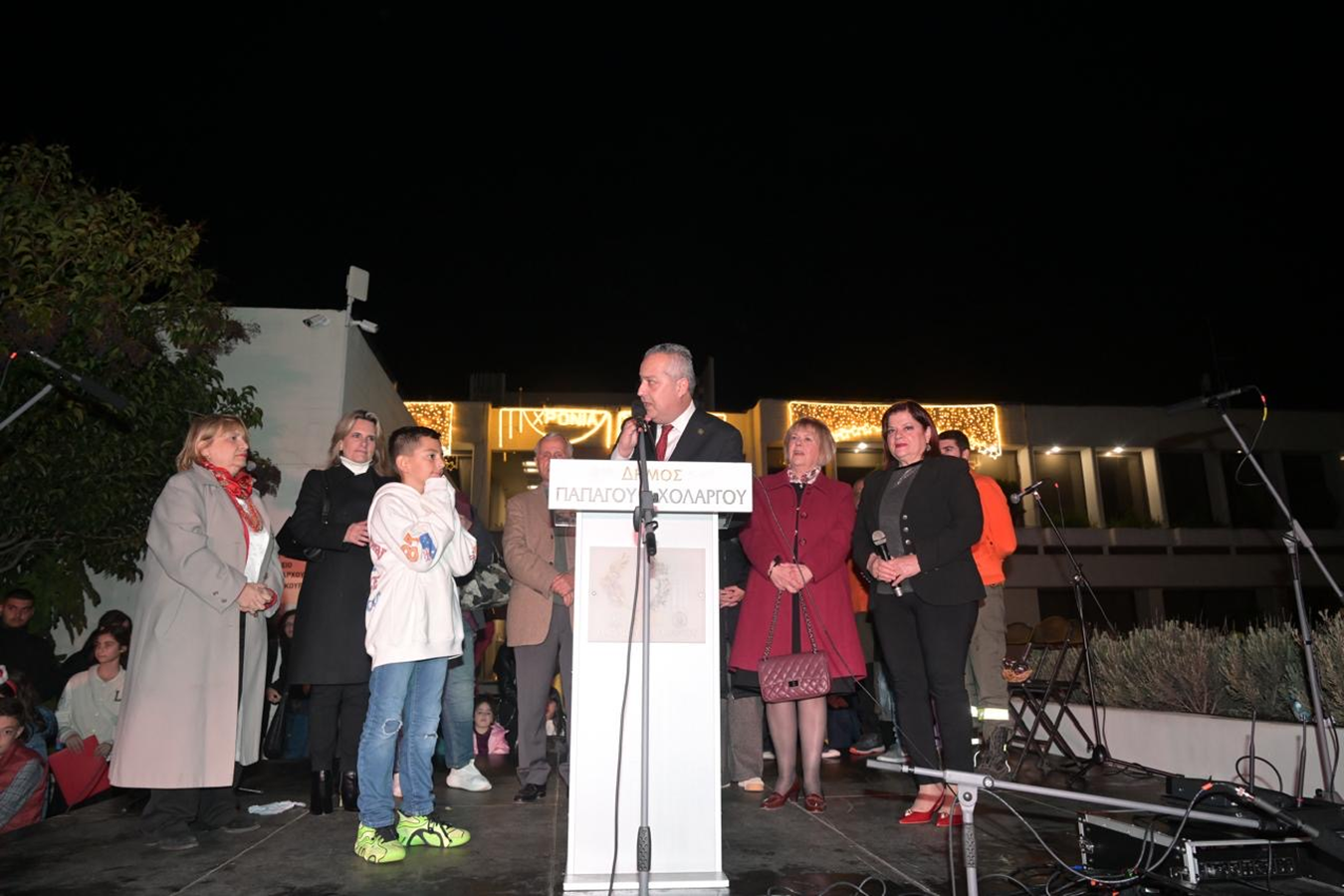 Μέσα σε μία ζεστή ατμόσφαιρα γεμάτη από παιδικά χαμόγελα και συγκίνηση, πραγματοποιήθηκε η φωταγώγηση του Χριστουγεννιάτικου δέντρου του Δήμου Παπάγου – Χολαργού, σηματοδοτώντας την επίσημη έναρξη της εορταστικής περιόδου.