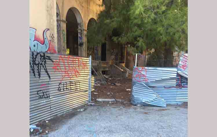 Η ανακοίνωση συνεχίζει: «Στην πρώτη κιόλας παρέμβαση διαμόρφωσης, ξοδεύτηκαν άσκοπα αρκετές χιλιάδες ευρώ σε απερίσκεπτη απόφαση, να χρησιμοποιηθούν για την περιμετρική περίφραξη τού εγκαταλελειμμένου κτιρίου, γαλβανιζέ φύλλα λαμαρίνας. Το αποτέλεσμα τής επιλογής αυτής είναι εντελώς αποκαρδιωτικό, καθώς οι λαμαρίνες μέσα σέ λίγο χρονικό διάστημα αποσπάστηκαν και διασκορπίστηκαν στον περιβάλλοντα χώρο. Ποιος θα πληρώσει τελικά το «μάρμαρο» τής ευφυΐας τού ειδικού πού εισηγήθηκε αυτή την επιλογή; Μα φυσικά όπως πάντα το «κορόιδο ο πολίτης».