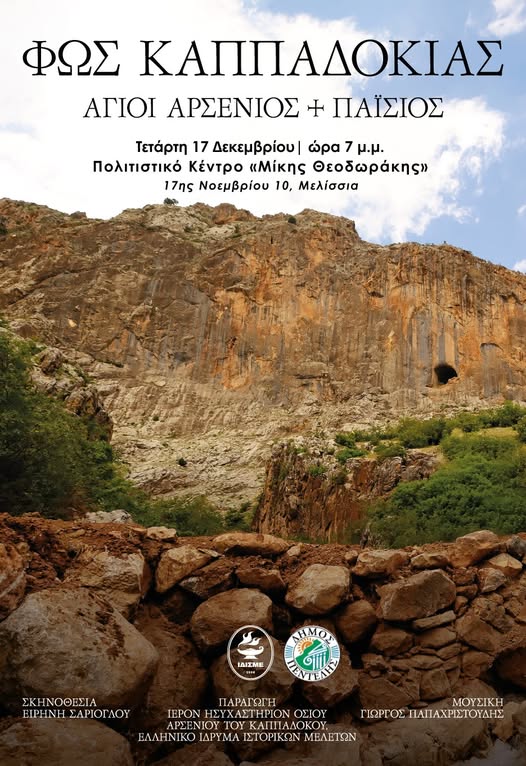 Ο Δήμος Πεντέλης την Τετάρτη 17 Δεκεμβρίου στις 19.00 πραγματοποιεί  μια ξεχωριστή πολιτιστική εκδήλωση αφιερωμένη στο πνευματικό φως και την ιστορική μνήμη της Καππαδοκίας. Την παραγωγή έκαναν το Ιερόν Ησυχαστήριον Οσίου Αρσενίου του Καππαδόκου, Ελληνικό Ίδρυμα Ιστορικών Μελετών.