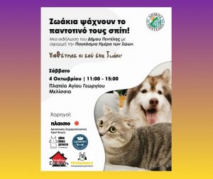 Η όμορφη αυτή συνάντηση γεμάτη δράσεις, αγάπη για τα ζώα και δημιουργικότητα θα πραγματοποιηθεί το Σάββατο 4 Οκτωβρίου από τις 11:00 έως τις 15:00 στην πλατεία Αγίου Γεωργίου στα Μελίσσια.