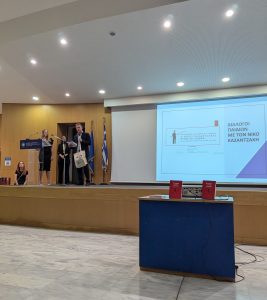 Η διευθύντρια του Μουσείου Νίκου Καζαντζάκη, κυρία Μαριλένα Μηλαθιανάκη. Μάλιστα, το Μουσείο Νίκου Καζαντζάκη προχώρησε στην ευγενική χορηγία ενός αντικειμένου από τη συλλογή του που δόθηκε ως δώρο στους νικητές του 2ου βραβείου στον Διαγωνισμό Δημιουργικής Γραφής.