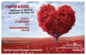 Οι πολιτιστικοί σύλλογοι Βριλησσίων, υπό την αιγίδα του Δήμου Βριλησσίων, ενώνουν τις δυνάμεις τους για έναν σημαντικό σκοπό και προσκαλούν τους πολίτες στην «3η Γιορτή Αγάπης», που θα πραγματοποιηθεί το Σάββατο 25 Απριλίου στην πλατεία Αναλήψεως στα Βριλήσσια.