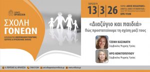 Στο πλαίσιο της εκδήλωσης, οι σύμβουλοι ψυχικής υγείας Ηρώ Κονιτοπούλου και Τζένη Κασιμάτη θα αναλύσουν τους τρόπους με τους οποίους τα παιδιά αντιλαμβάνονται τις αλλαγές στη δομή της οικογένειας, τις συνηθέστερες ψυχολογικές αντιδράσεις ανά ηλικιακή ομάδα, καθώς και πρακτικές στρατηγικές που μπορούν να εφαρμόσουν οι γονείς, ώστε να διασφαλίσουν ένα περιβάλλον σταθερότητας και συναισθηματικής ασφάλειας.