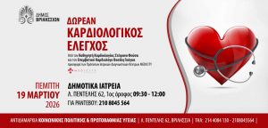 Δωρεάν καρδιολογικό έλεγχο για όλους τους πολίτες διοργανώνει ο Δήμος Βριλησσίων, μέσω της Αντιδημαρχίας Κοινωνικής Πολιτικής, στο πλαίσιο των δράσεων πρόληψης και προαγωγής της υγείας των πολιτών.