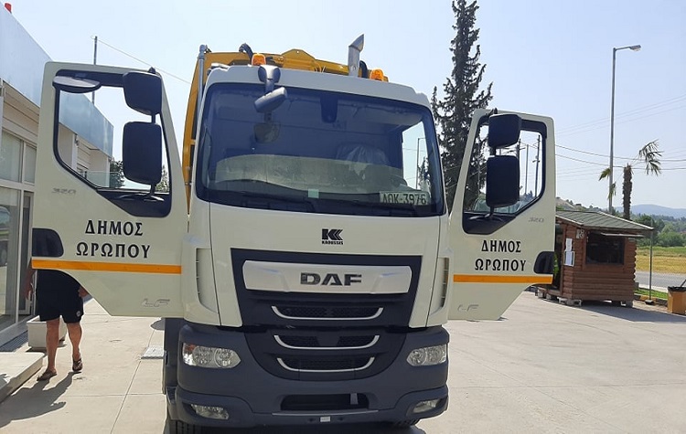 Το πρώτο από τα πέντε υπερσύγχρονα απορριμματοφόρα με ενσωματωμένο πλυντήριο κάδων παρέλαβε η υπηρεσία καθαριότητας του Δήμου Ωρωπού παρουσία του δημάρχου Γιώργου Γιασημάκη.