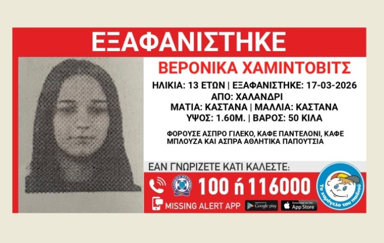 Λίγες ώρες μετά τον εντοπισμό της νεαρής Θεοδώρας, την Τρίτη 17 Μαρτίου, εξαφανίστηκε από χώρο φιλοξενίας ασυνόδευτων ανηλίκων στο Χαλάνδρι η 13χρονη Βερόνικα Χαμίντοβιτς.