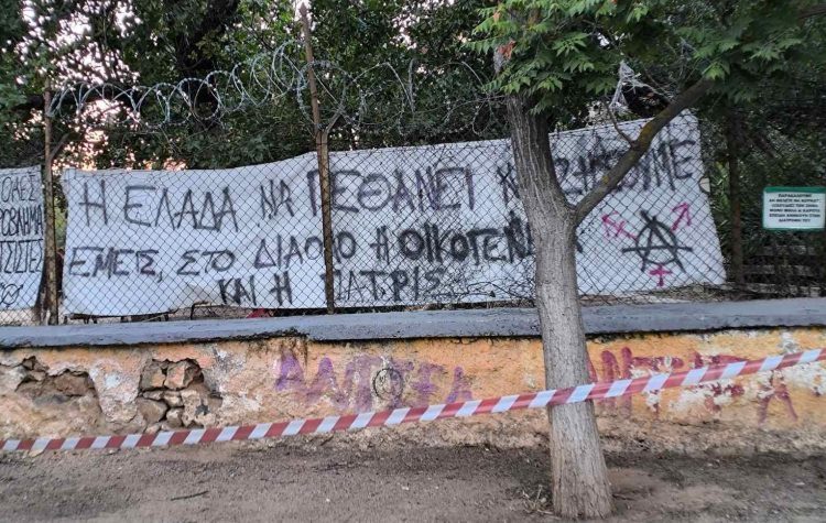 Μήπως,όμως,ήρθε η ώρα να υπάρξει γιγαντωμένη αντίδραση,όταν αυτή την στιγμή στην περίφραξη του υπό κατάληψη κτήματος,ακριβώς απέναντι από το Θέατρο Ρεματιάς Χαλανδρίου,που είναι τοπόσημο πολιτισμού,υψώνονται πανό που αναγράφουν: Η ΕΛΛΑΔΑ ΝΑ ΠΕΘΑΝΕΙ ΝΑ ΖΗΣΟΥΜΕ ΕΜΕΙΣ, ΣΤΟ ΔΙΑΟΛΟ Η ΟΙΚΟΓΕΝΕΙΑ ΚΑΙ Η ΠΑΤΡΙΣ!!!