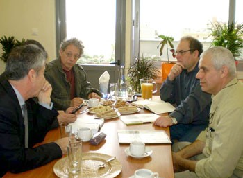 Ο δήμαρχος της Παλαιστίνης συνοδευόταν από αντιπροσωπεία της Ενωσης Παλαιστίνιων Εργαζομένων στην Ελλάδα. Η συνάντηση έγινε σε ζεστό και φιλικό κλίμα, ενώ στην εποικοδομητική συζήτηση που αναπτύχθηκε οι δυο δήμαρχοι ανέλυσαν θέματα τοπικής αυτοδιοίκησης των πόλεών τους, αντάλλαξαν απόψεις και διερεύνησαν πιθανούς τρόπους συνεργασίας των δυο πόλεων. Ιδιαίτερα συζητήθηκε η ανάγκη ενίσχυσης με ιατροφαρμακευτικό υλικό και ιατρικό εξοπλισμό του μοναδικού κέντρου υγείας της πόλης Beit Ummar που παραμένει κλειστό εξαιτίας ακριβώς αυτής της έλλειψης.